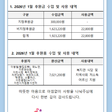 2026년 제 1차 시설운영위원회 정기회의 개최□ 개 요● 일 시: 2026. 3. 18.(수) 15:00● 장 소: 우리 복지관 자원봉사자실● 참석인원: 총 6명 위원 – 박상진, 이석영, 어흥선, 이현호, 이명은(대리참석), 박계선□ 내 용● 주요안건보고 및 심의사항 - 전차 회의록 보고 - 2026년 1분기 운영현황 보고 - 2026년 1분기 주요사업 보고 - 2026년 2분기 사업계획 보고 - 2025년 결산 보고 - 2026년 1차 추경예산(안)보고 - 기타 보고사항(직원동정, 공모사업, 고충처리사항, 2025년 후원금 수입및 사용결과보고 등)