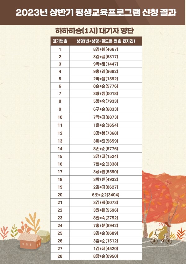 [공지] 2023년 제27기 장수대학 상반기 수강 신청 결과 안내
