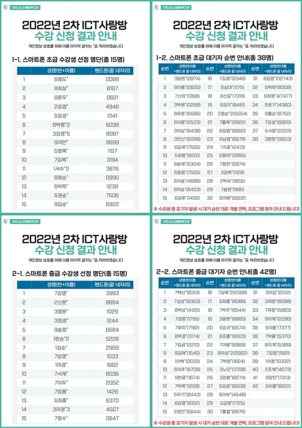 [공지] 2022년 2차 ICT사랑방 프로그램 수강 신청 결과 안내