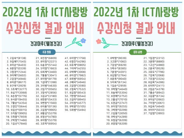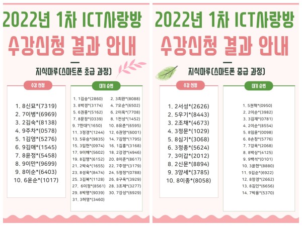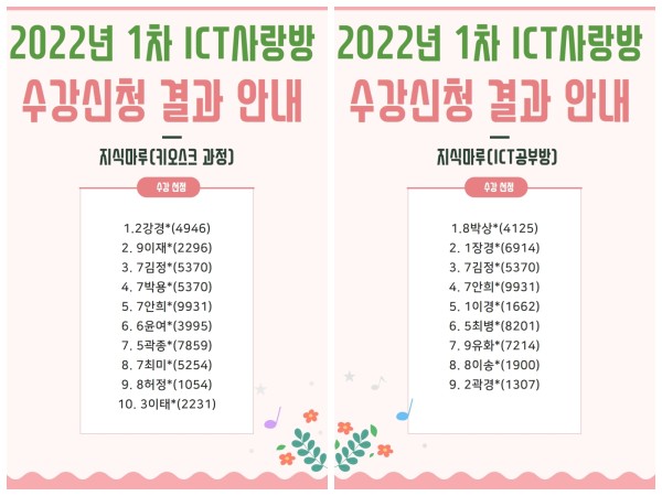 [공지] 2022년 1차 ICT사랑방 수강 신청 결과 안내