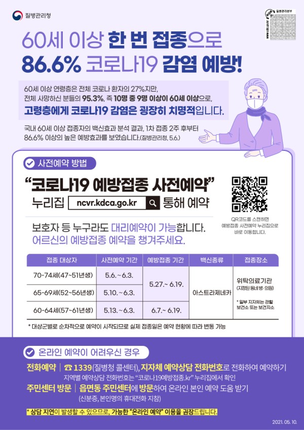 코로나-19 감염증은 고령층에 치명적이나 백신 접종 시 높은 예방 효과를 보이고 있습니다.