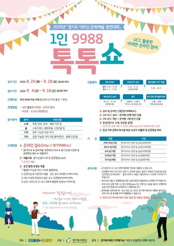 [안내] 2020년 경기도 어르신 문화예술 경연대회(1인 9988톡톡쇼) 참여자 모집