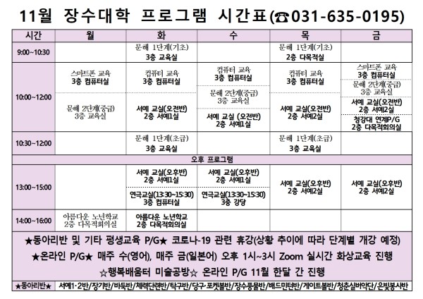 [공지] 2020년 11월 평생교육 프로그램 시간표