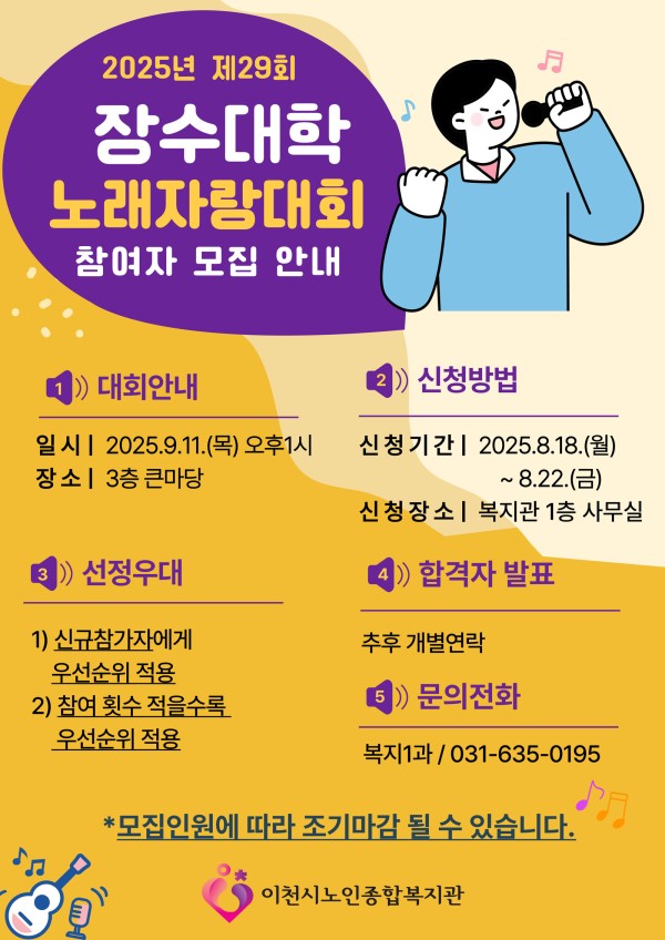 [마감] 2025년 장수대학 노래자랑대회 참가자 모집