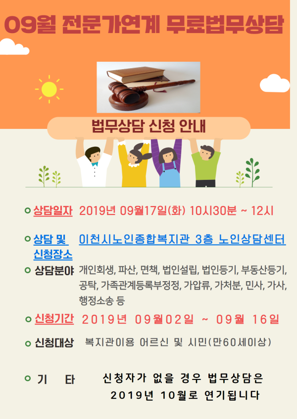 2019년 09월 전문가연계 무료법무상담 신청 안내