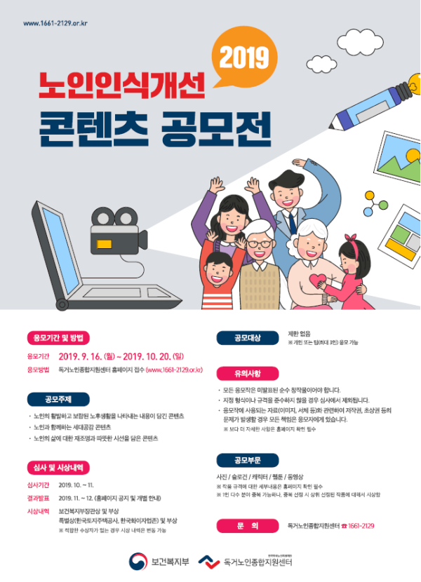 2019년 노인인식개선 콘텐츠 공모전을 진행합니다