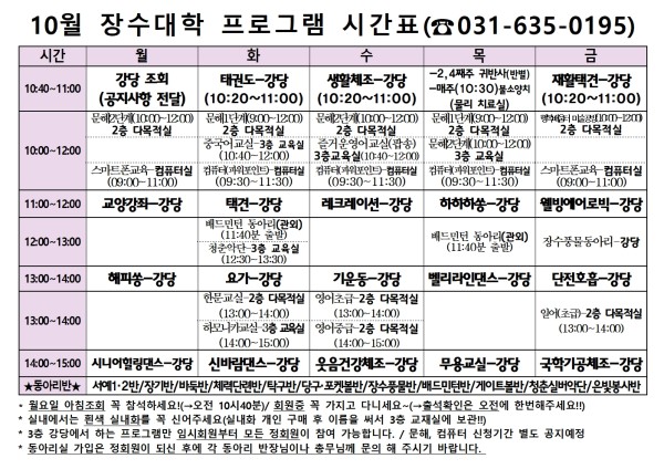 [공지] 2019년 10월 장수대학 프로그램 시간표