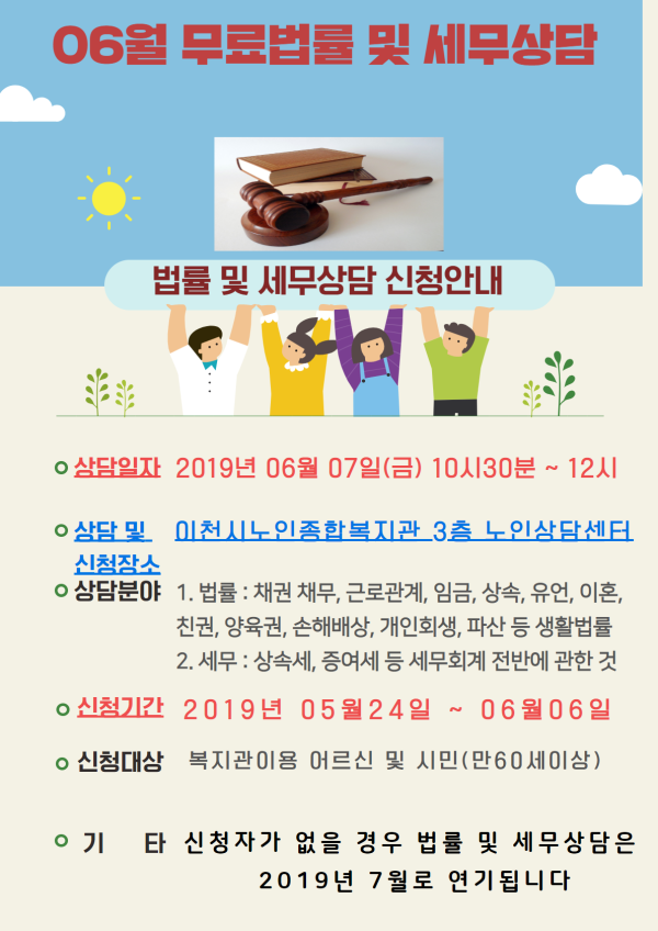2019년 06월 전문가연계 무료 법률 및 세무상담 신청 안내