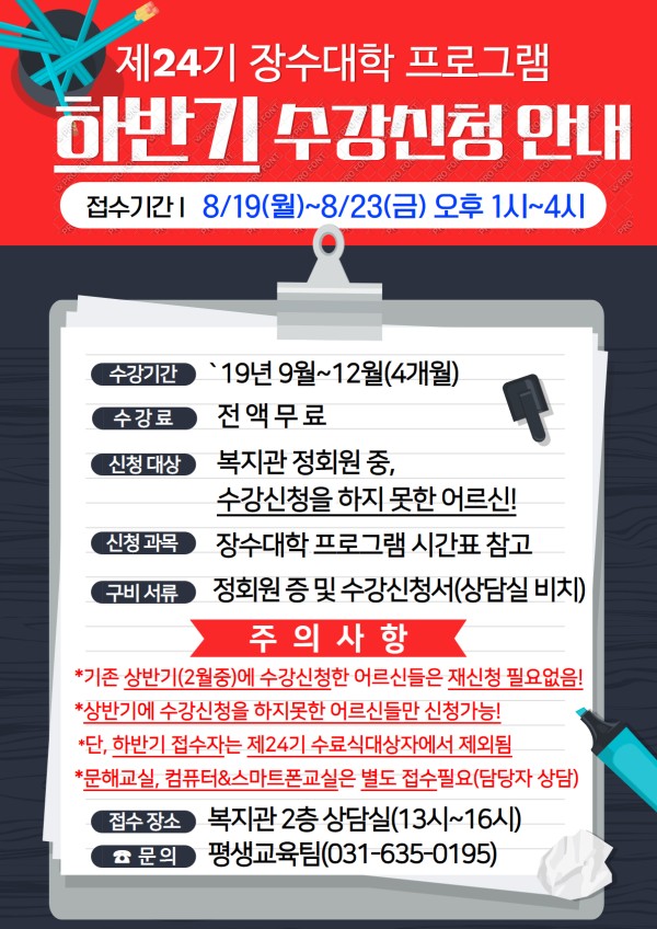 [공지] 2019년도 제24기 장수대학 프로그램 하반기 수강신청 안내
