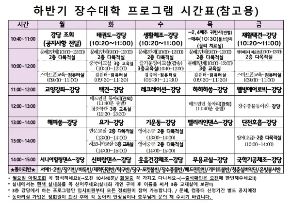 - 다음글[공지] 2019년 8월 장수대학 프로그램 시간표 2019-07-23