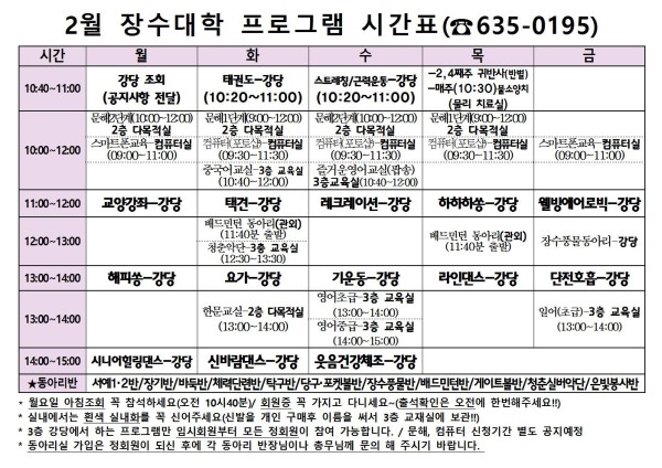 [공지] 2019년 2월 장수대학 프로그램 시간표
