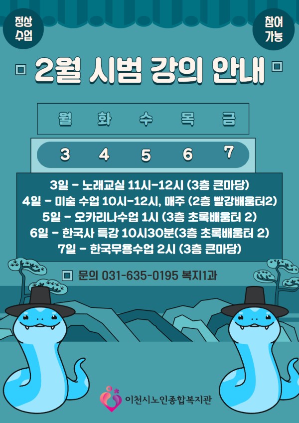 이천시노인종합복지관에서는 2025년 2월 첫째주에 시범으로 강의를 할 예정입니다.