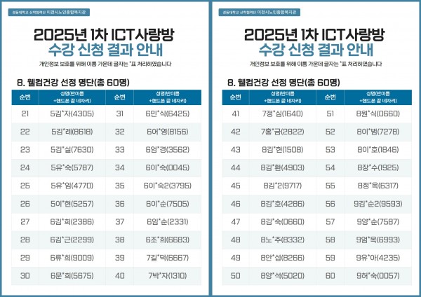 [공지] 2025년 1차 ICT사랑방 프로그램 수강 신청 결과 안내
