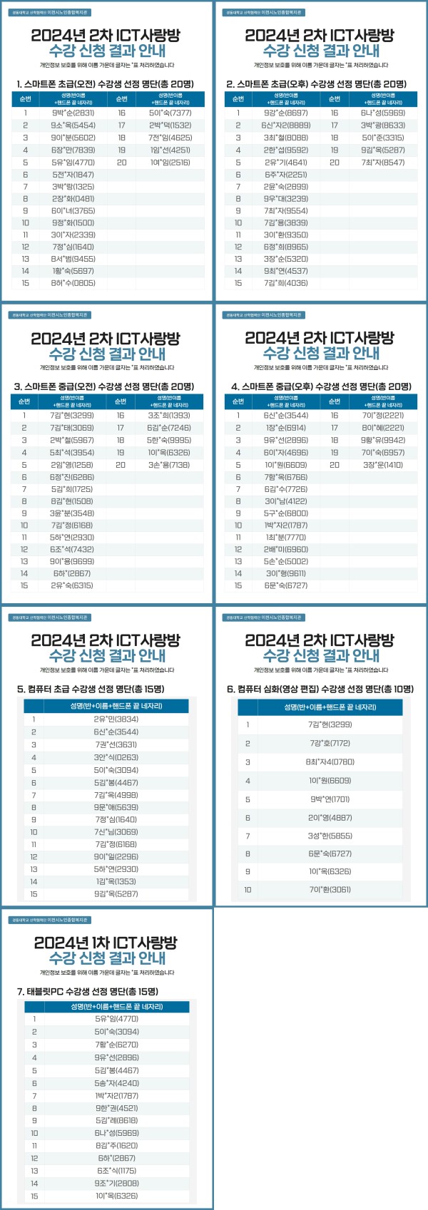 [공지] 2024년 2차 ICT사랑방 프로그램 수강 신청 결과 안내