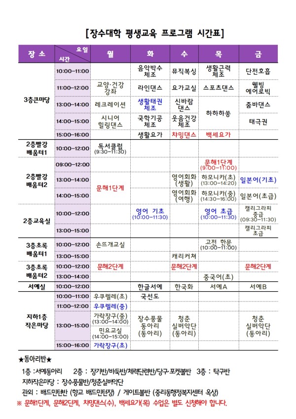 [마감] 2024년 제28기 하반기 장수대학 프로그램 및 건강마루 프로그램 수강신청 안내