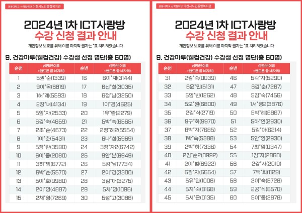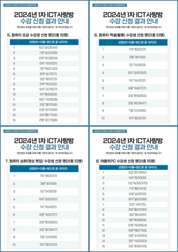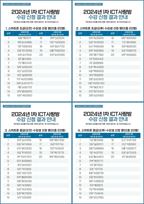 [공지] 2024년 1차 ICT사랑방 프로그램 수강 신청 결과 안내