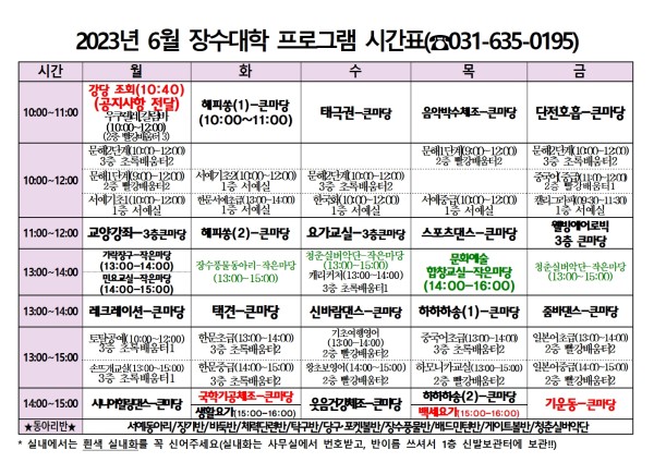 2023년 6월 장수대학 시간표