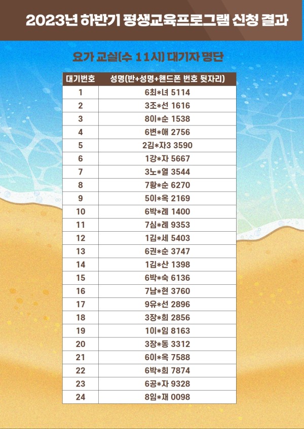 [공지] 2023년 제27기 장수대학 하반기 수강 신청 결과 안내