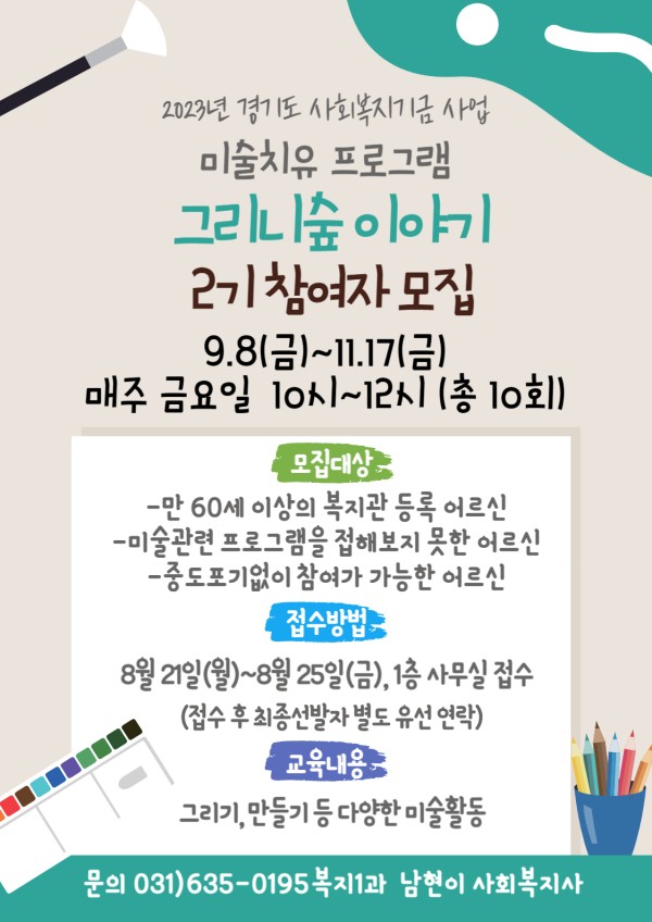 [마감]2023년 미술치유프로그램「그리니숲 이야기」2기 참여자 모집