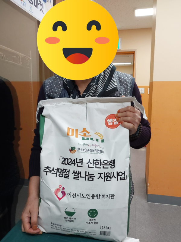 이천시노인종합복지관(관장 이석영)은 2024년 한국노인종합복지관협회 '신한은행 추석명절 쌀나눔' 지원사업에 선정되어