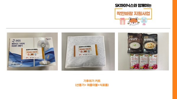 ○ 사업명 : SK하이닉스와 함게하는 기후위기(폭염 등) 취약노인을 위한 착한바람 지원사업(기후위기 키트 전달)