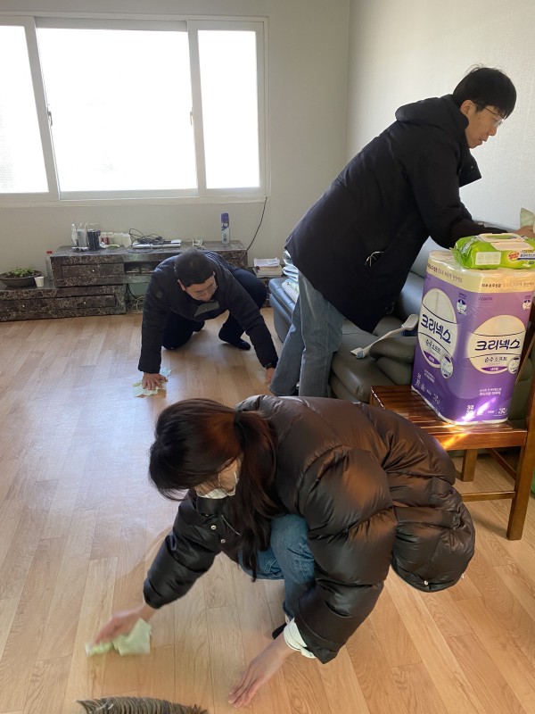 1. 활동내용: 어르신댁 주거환경개선 청소봉사(주방, 냉장고, 욕실 청소, 바닥 청소, 쓰레기수거 등)