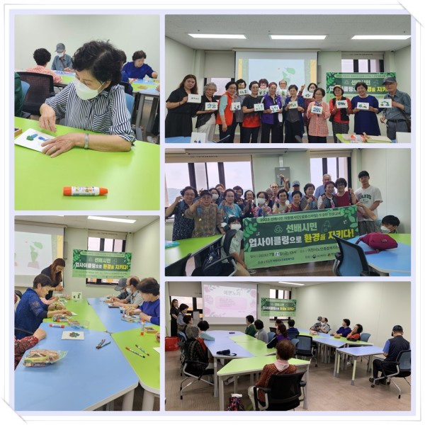 우리복지관 선배시민 설봉스마일 봉사단 어르신들이 7월 14일과 21일 양일에 거쳐서 업사이클링 전문교육을 받았습니다.