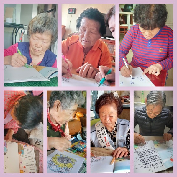 나중에는 직접 시도 지어 보시고 그림을 모두 색칠하신 후에 더 색칠하고 싶다며 즐거워하셨다고 합니다 ㅎㅎ