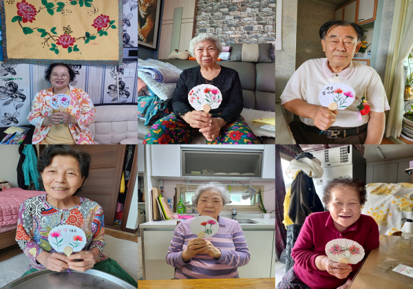 생활지원사 선생님들과 함께 부채에 원하는 글귀나 말을 적어보고