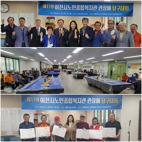 이천시노인종합복지관(관장 이지원)에서는 5월 18-19일 양일간에 걸쳐 제11회 이천시노인종합복지관장배 당구대회를 개최하였습니다.