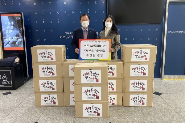 물품 전달에는 이천시노인종합복지관 이지원 관장님과 대한노인회 이천시지회 원종성 회장님께서 함께해주셨습니다
