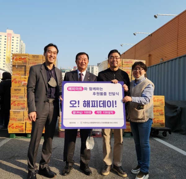 해피마트에서는 쌀(4kg) 100포, 라면 150상자를 후원해 주셨습니다.