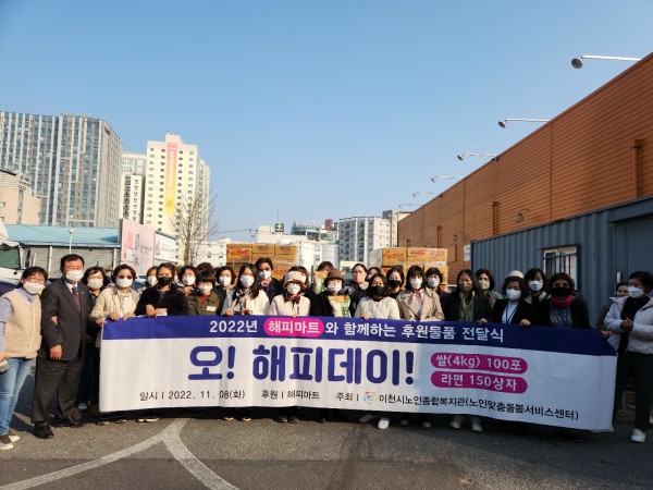11월 8일 해피마트에서 취약계층 독거어르신들을 위한 후원물품 전달식 " 오! 해피데이! " 를 진행했습니다.