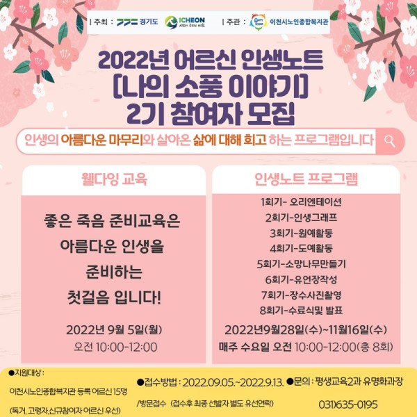 내용:2022년 경기도 어르신 인생노트 [나의 소풍 이야기] 웰다잉(Well Dying)특강