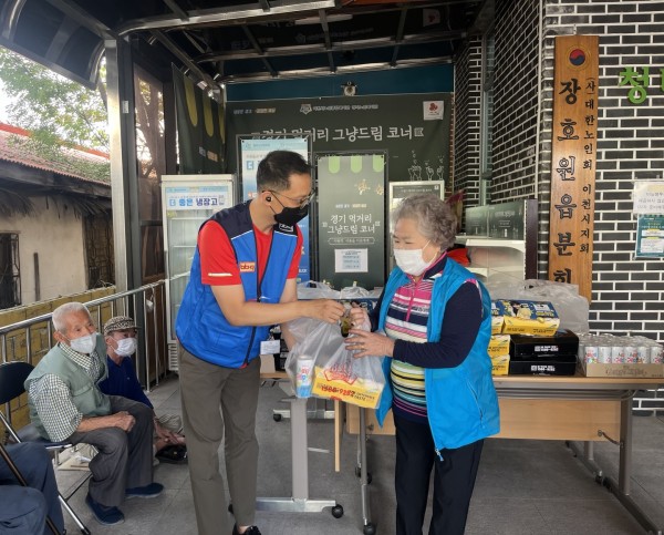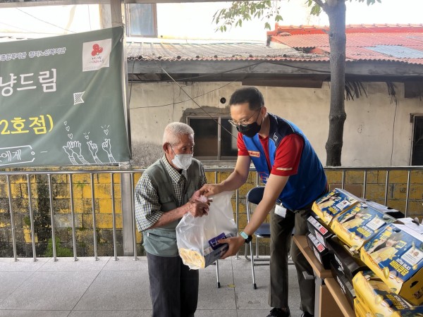 치킨은 복지관 1층에서 지역 내 저소득층 어르신들께 나눠드렸으며.