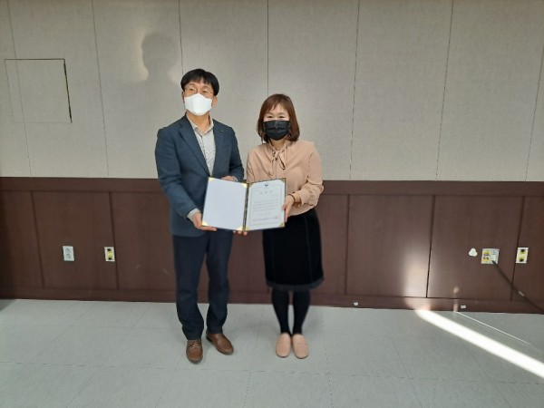 범죄로부터 안전한 지역사회 조성에 기여한 공로를 인정받아 이상애과장님이 표창장을 받게 되었습니다.
