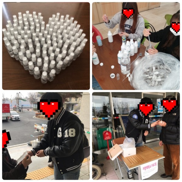 오늘은 가천대학교 사회공헌프로젝트 P&C팀이 코로나19로 지친 분들에게 응원의 메시지로 학생들이 직접 만든 손소독제와 마스크를