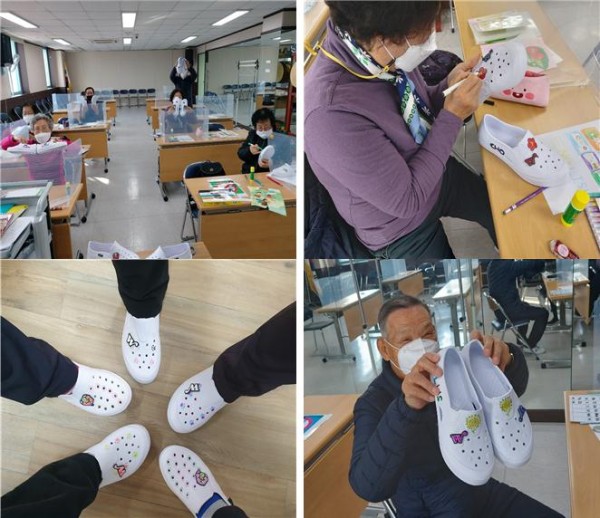 기관소식 [청미노인복지관]2020년 초등학력인정(성인문해)프로그램 창의적 체험활동 진행(실내화꾸미기)