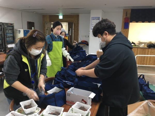 무료급식 대상 어르신들의 결식 예방을 위해 도시락을 싸드리고