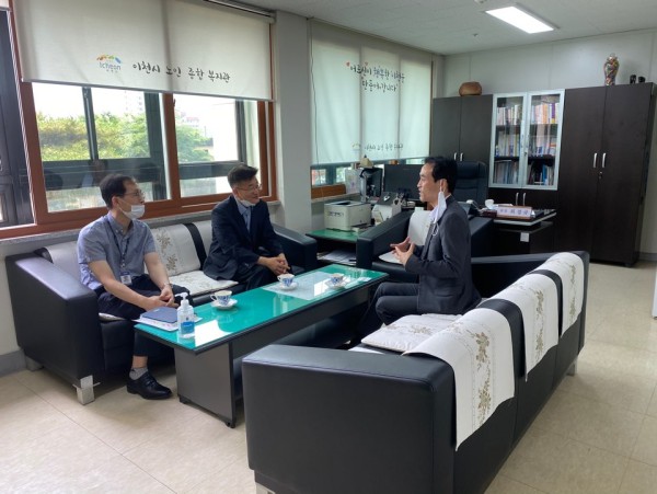 사진과같이 이천시노인종합복지관 최경규 관장과 인사를 나누고 바로 돌아가셨습니다.