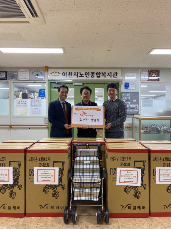 SK하이이엔지(대표이사 손석우)는 지난 7월2일에 이어, 12월2일 이천시노인종합복지관(관장 최경규)을 방문하여 어르신보행보조기 ‘실버카’ 17대를 추가로 기증해주셨습니다~