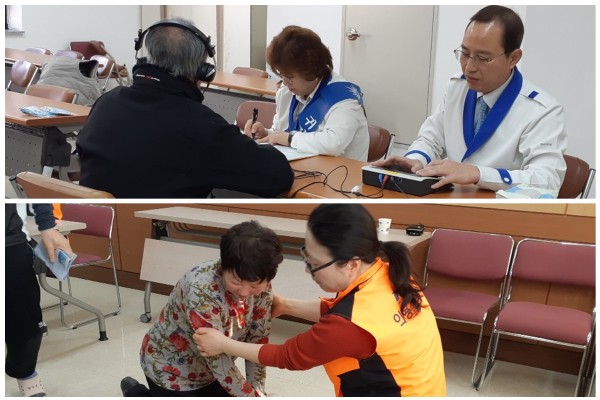 매월 1회, 복지관을 방문하여 어르신들에게 꼭 필요한 안경클리닉 서비스, 청력검사, 심폐소생술 교육, 혈압체크 등의