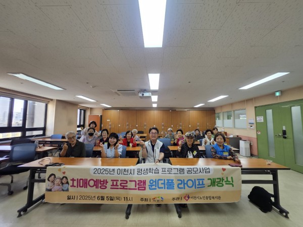 2025년 이천시 평생학습 프로그램 공모사업에 선정된 어르신 치매 예방 프로그램 '원더풀 라이프'의 개강식이
