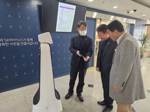 복지관의 새로운 친구 "클로이(안내로봇)"와 인사를 나누고