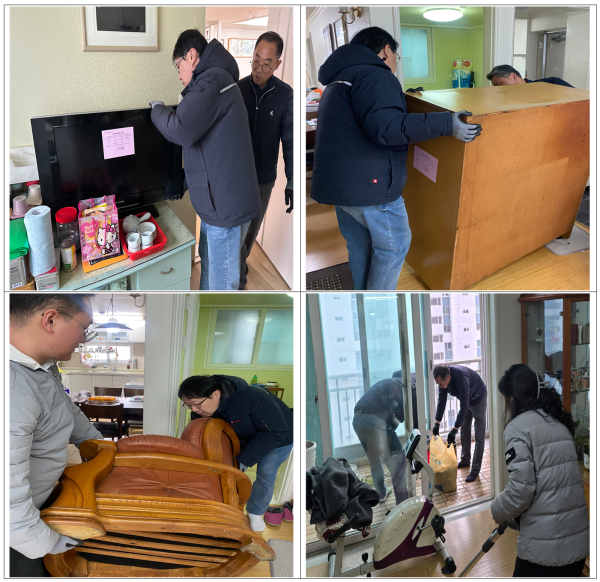 롯데글로벌로지스 봉사팀 6명과 사회복지사 3명, 생활지원사 1명이 어르신댁에 방문하여 가구, 가전 등 대형폐기물과 쓰레기를 배출하고,