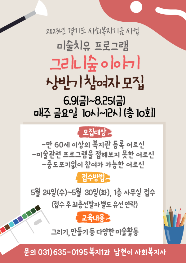 [모집마감]2023년 미술치유프로그램「그리니숲 이야기」상반기 참여자 모집