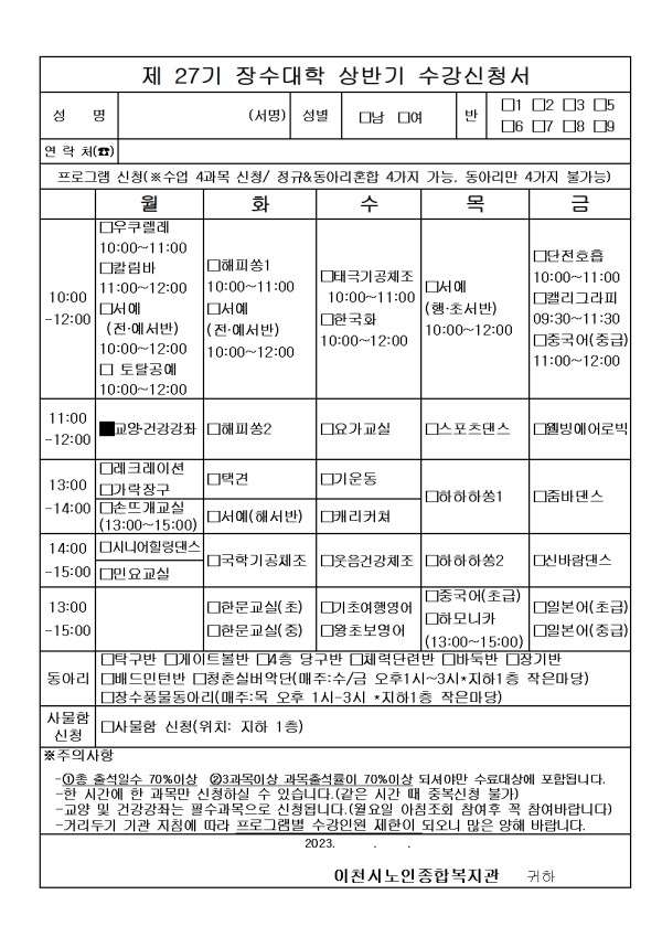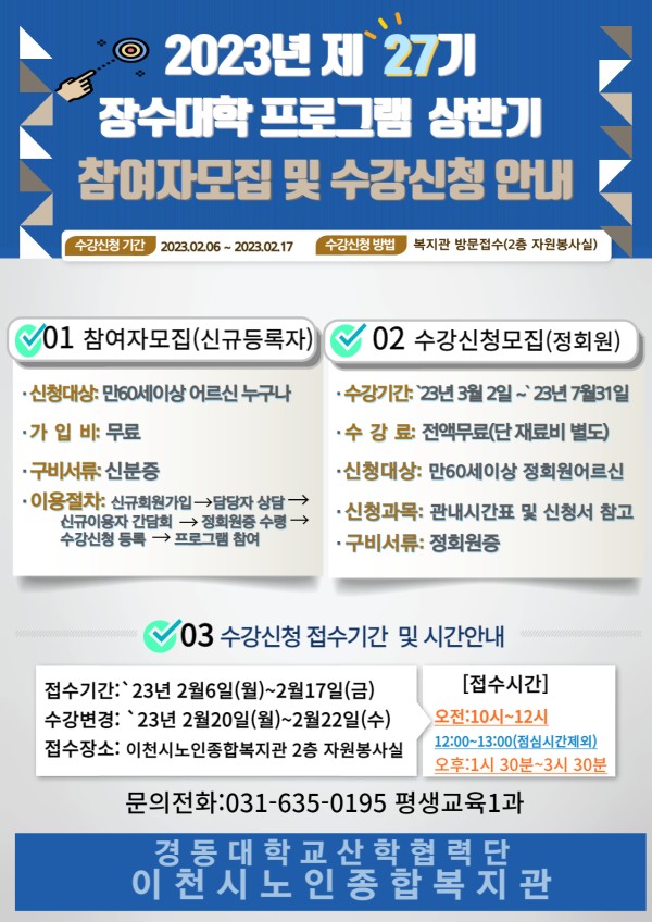[모집] 2023년 제 27기 장수대학 프로그램 상반기 참여자 모집 및 수강신청 안내
