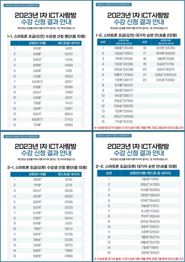 [공지] 2023년 1차 ICT사랑방 수강신청 결과 안내