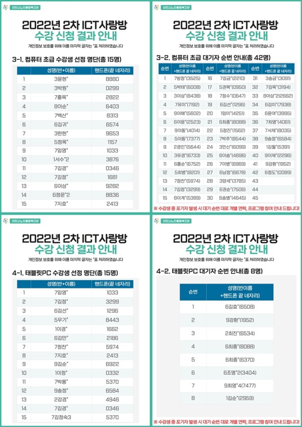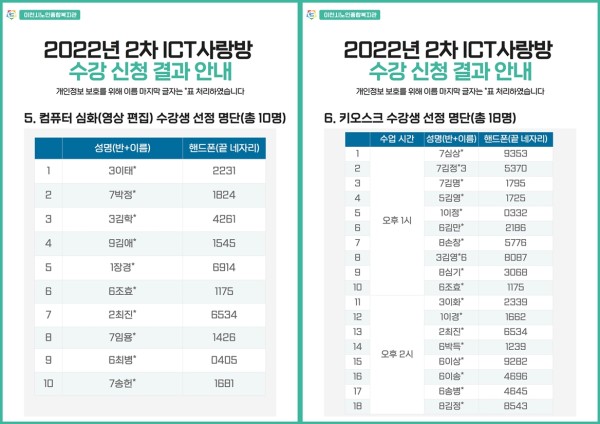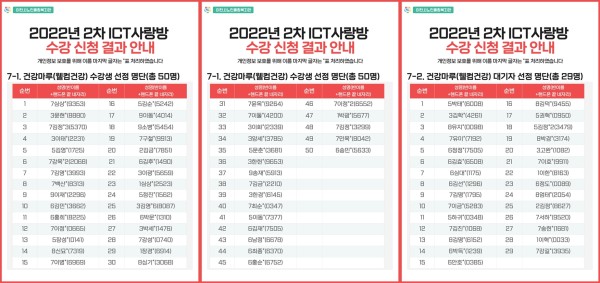 [공지] 2022년 2차 ICT사랑방 프로그램 수강 신청 결과 안내