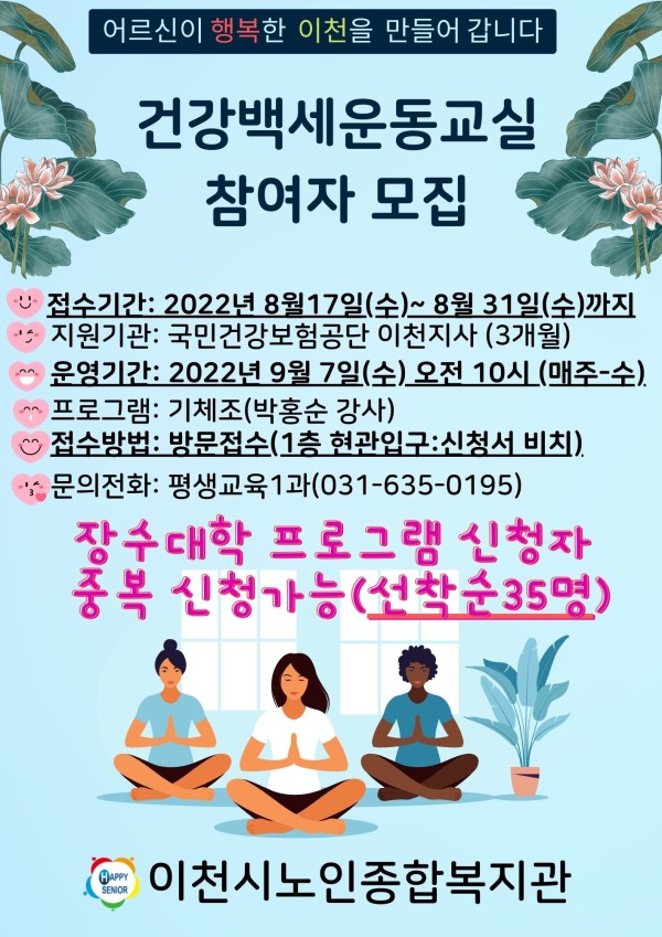 [모집] 2022년 국민건강보험공단 건강백세운동교실 참여자 모집(마감)